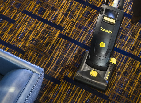 while moving to Tornado floor care equipment to clean the facility’s carpeted spaces,