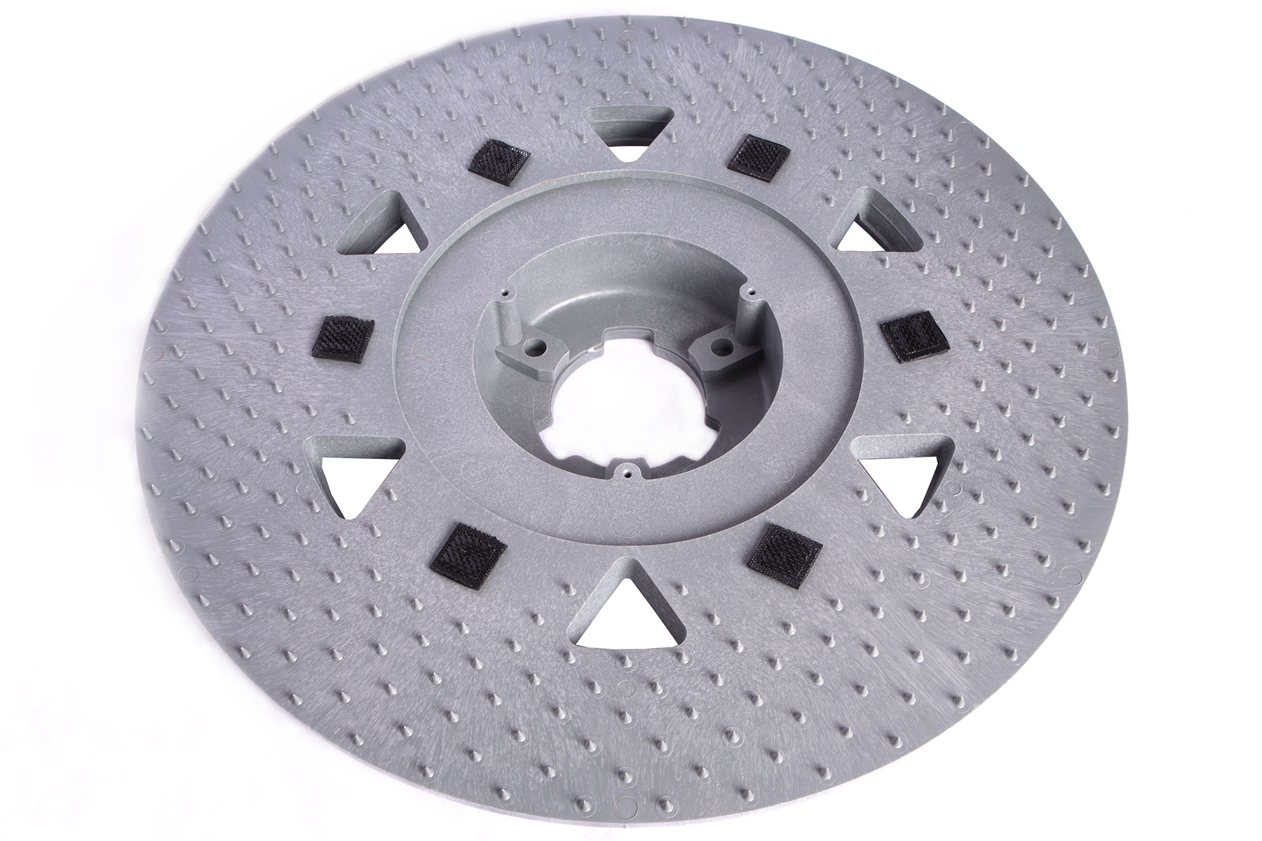 • Quick-grip pad holder for more efficient change and disposal of disc pads