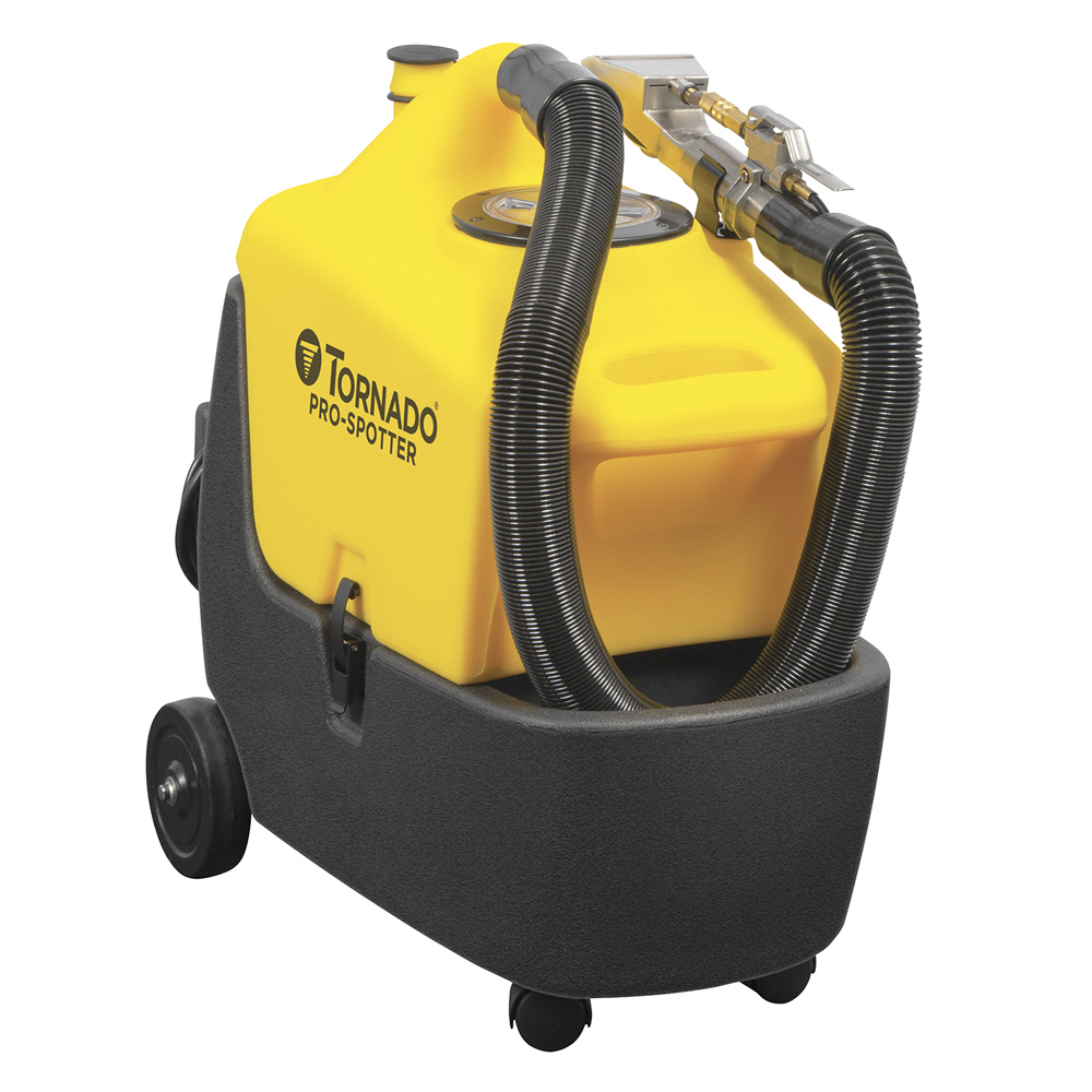 The Tornado Pro Spotter is 3.5 gallons, portable, lightweight, and extremely powerful. It is perfect for touch-ups, spot removal between scheduled carpet cleanings, and those locations where the bigger extractors just won’t fit. You can use it to pick up small wet spills quickly and easily. The Pro Spotter takes the hassle out of cleaning spots before they become a major stain. The compact unit weighs only 36 pounds and can be effortlessly moved from one location to the next by extending the telescoping handle and tilting the unit back on its 5” transport wheels.