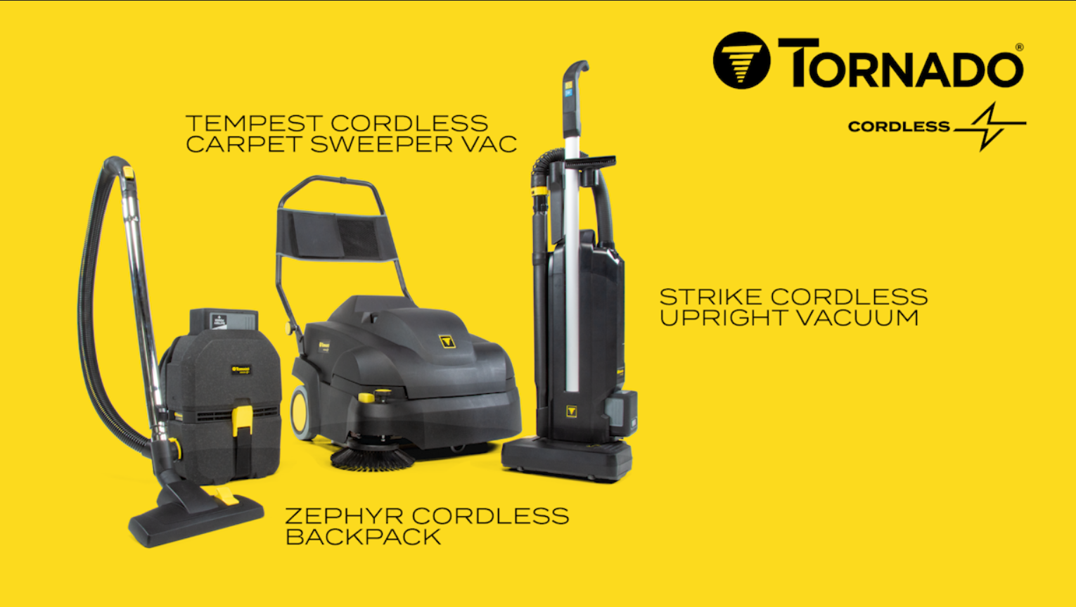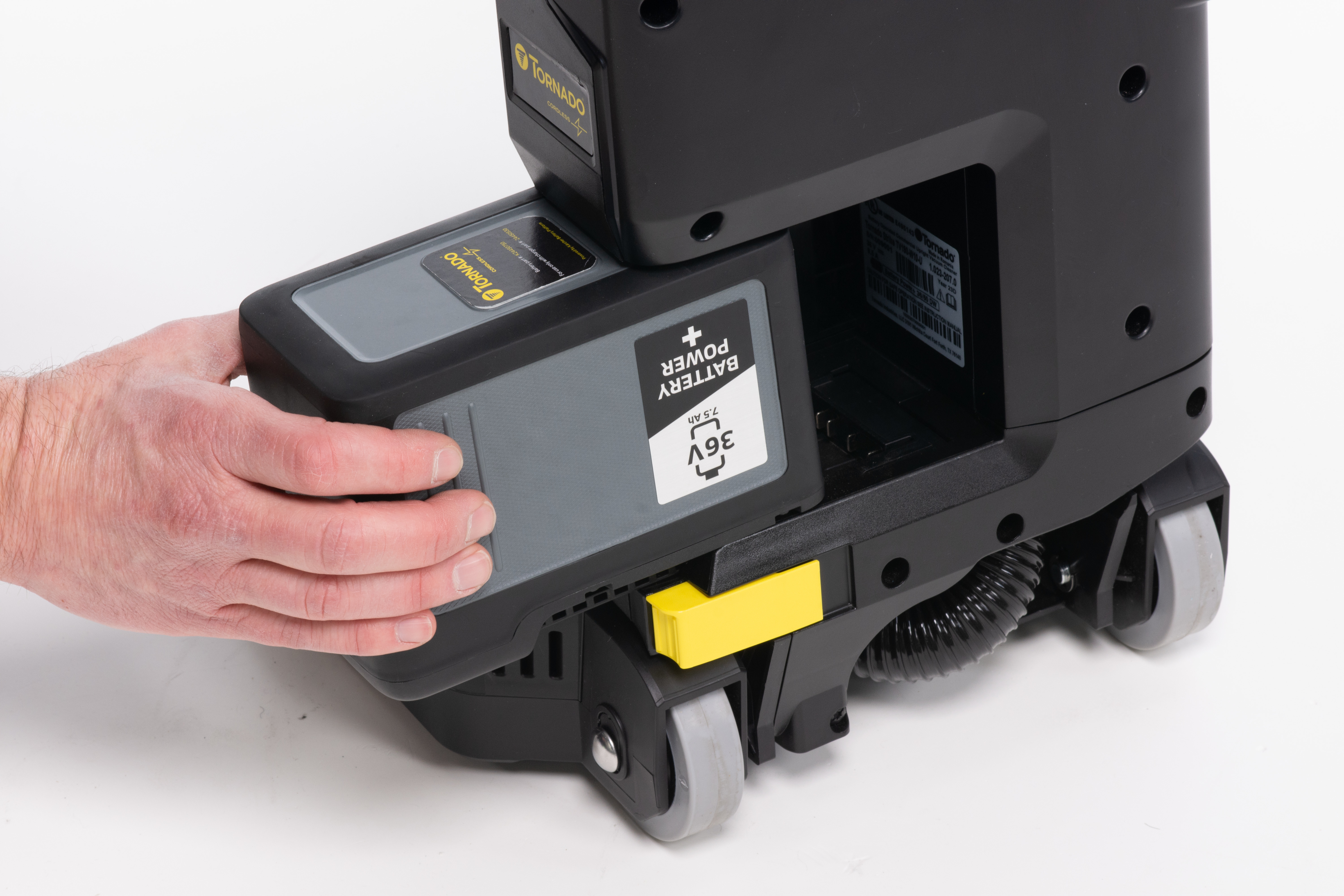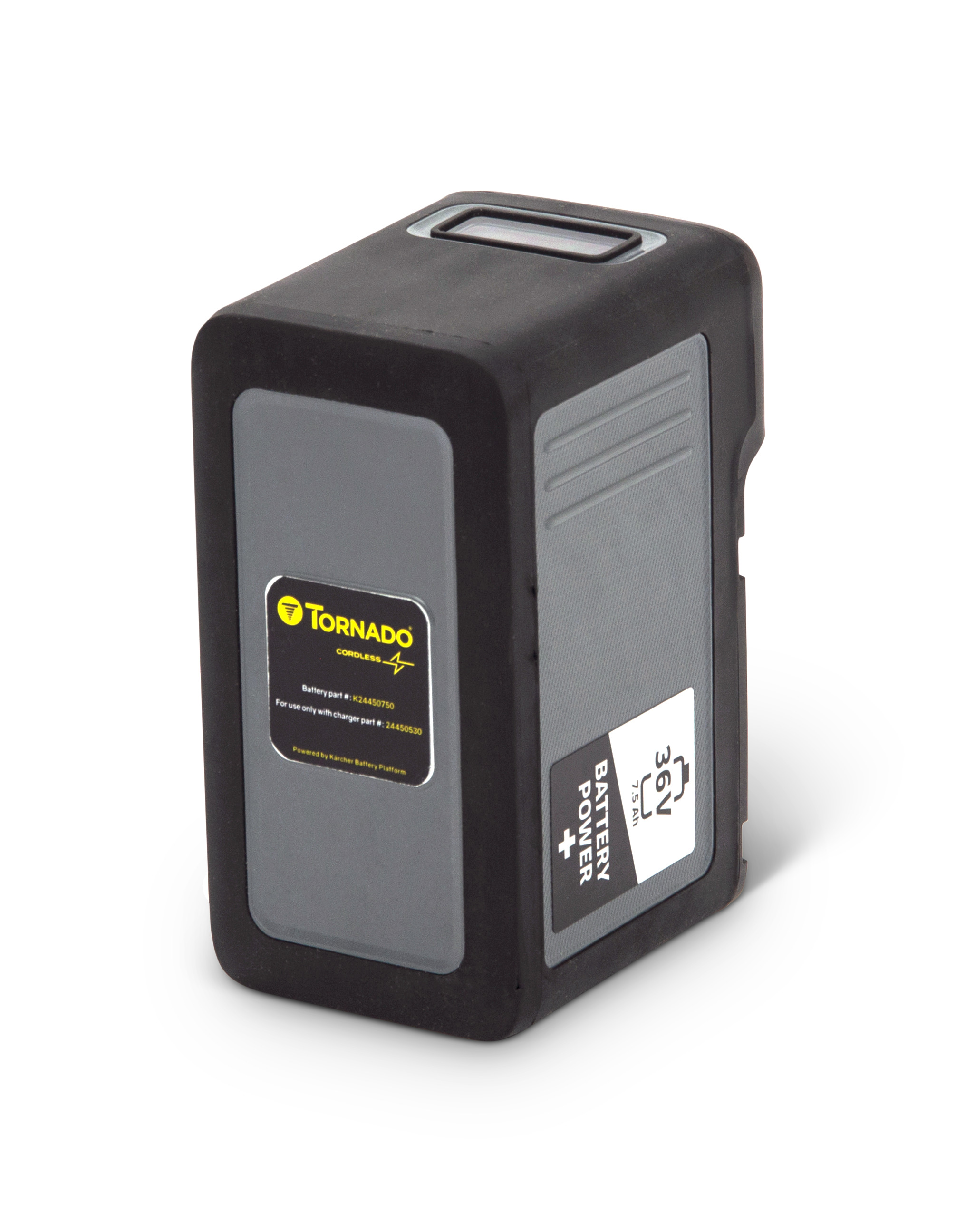 The Tornado Cordless interchangeable battery and charger are sold separately. Consider extra batteries for continuous use!