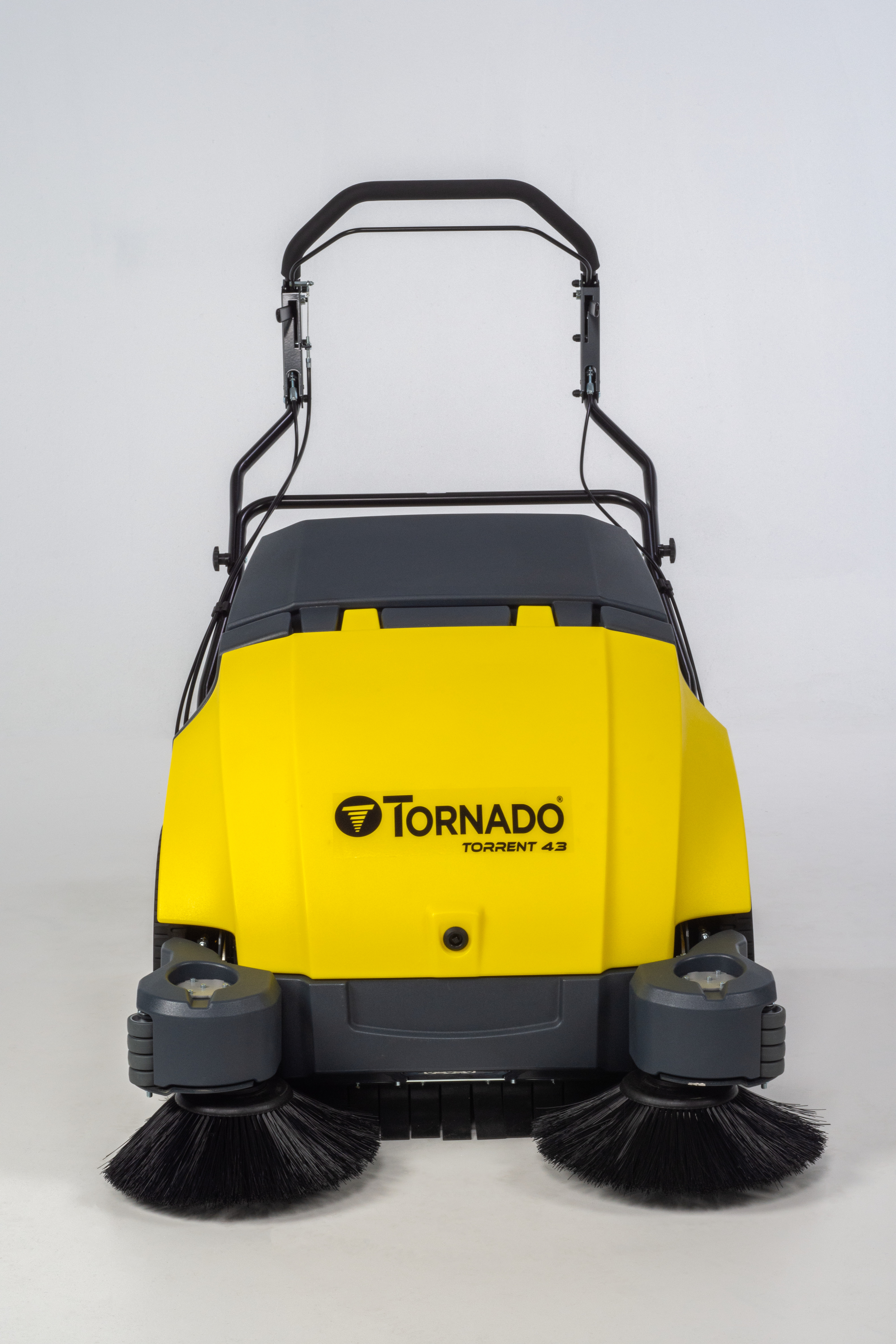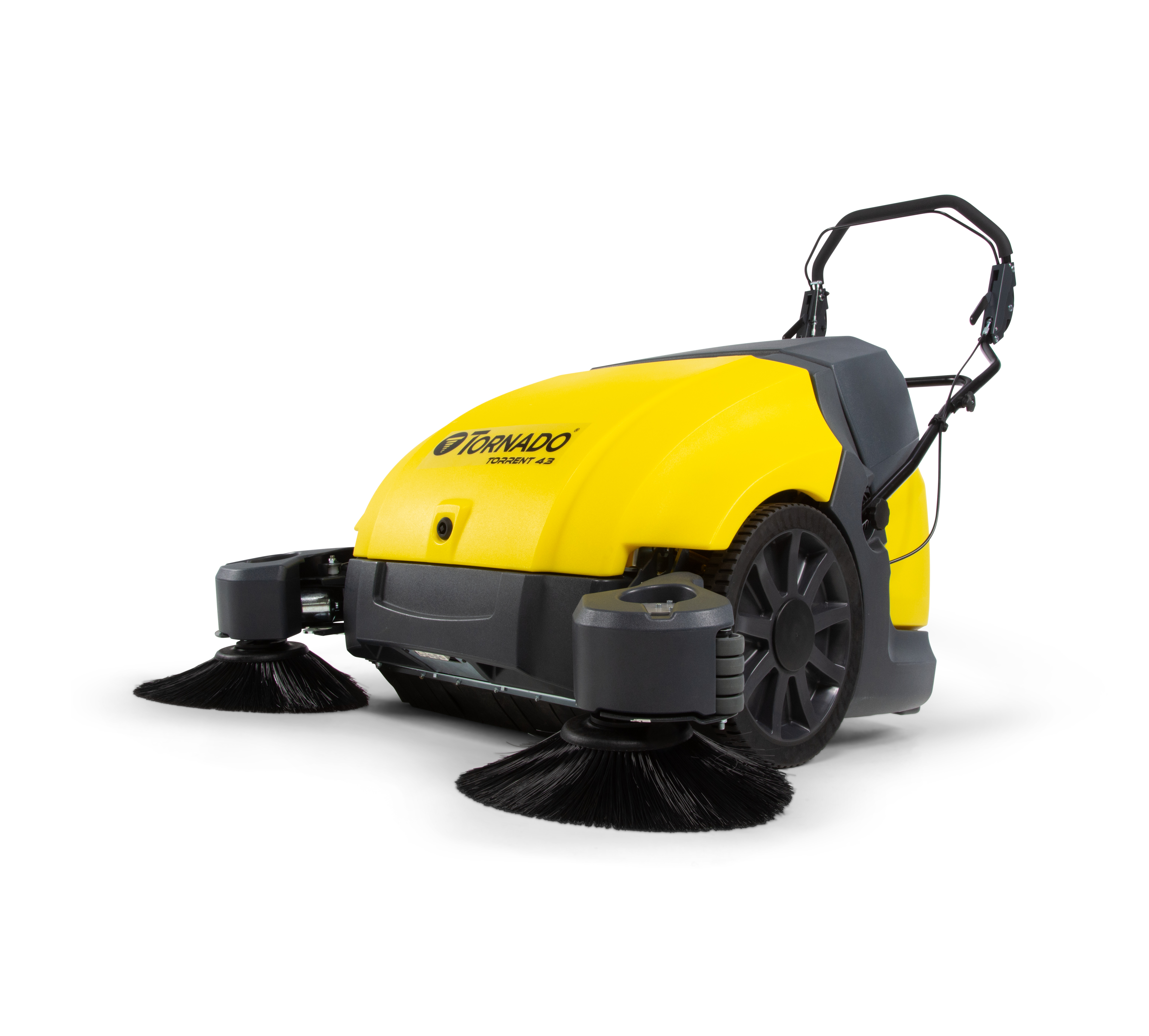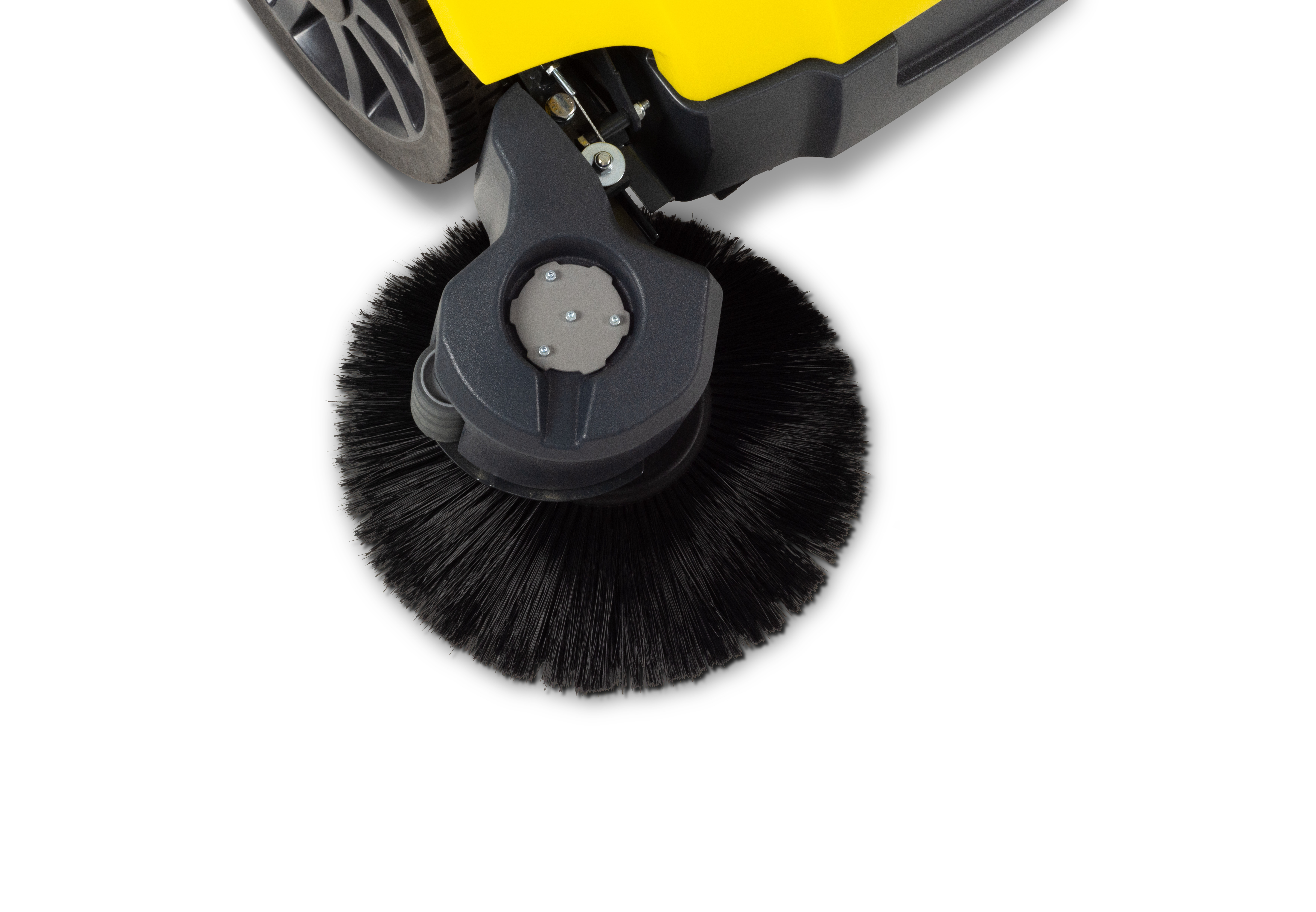 Two foldout side brushes providing a sweeping path range of 35.4”-43” wide and enabling effective cleaning of corners and along edges